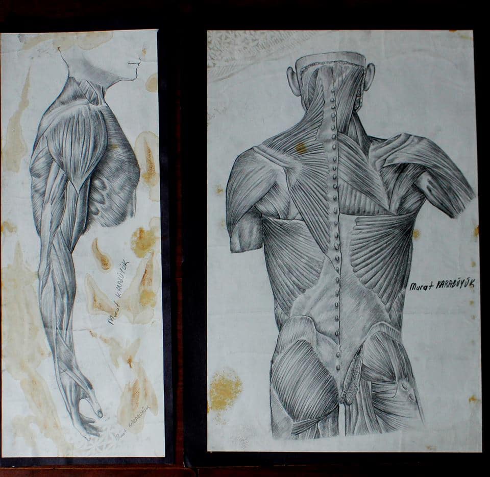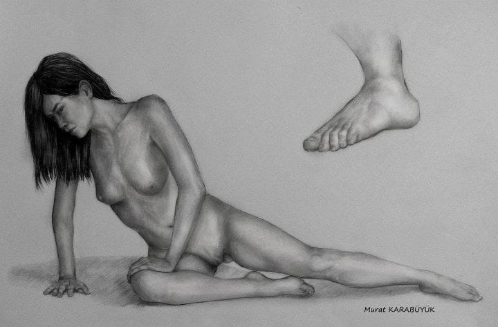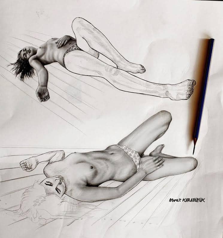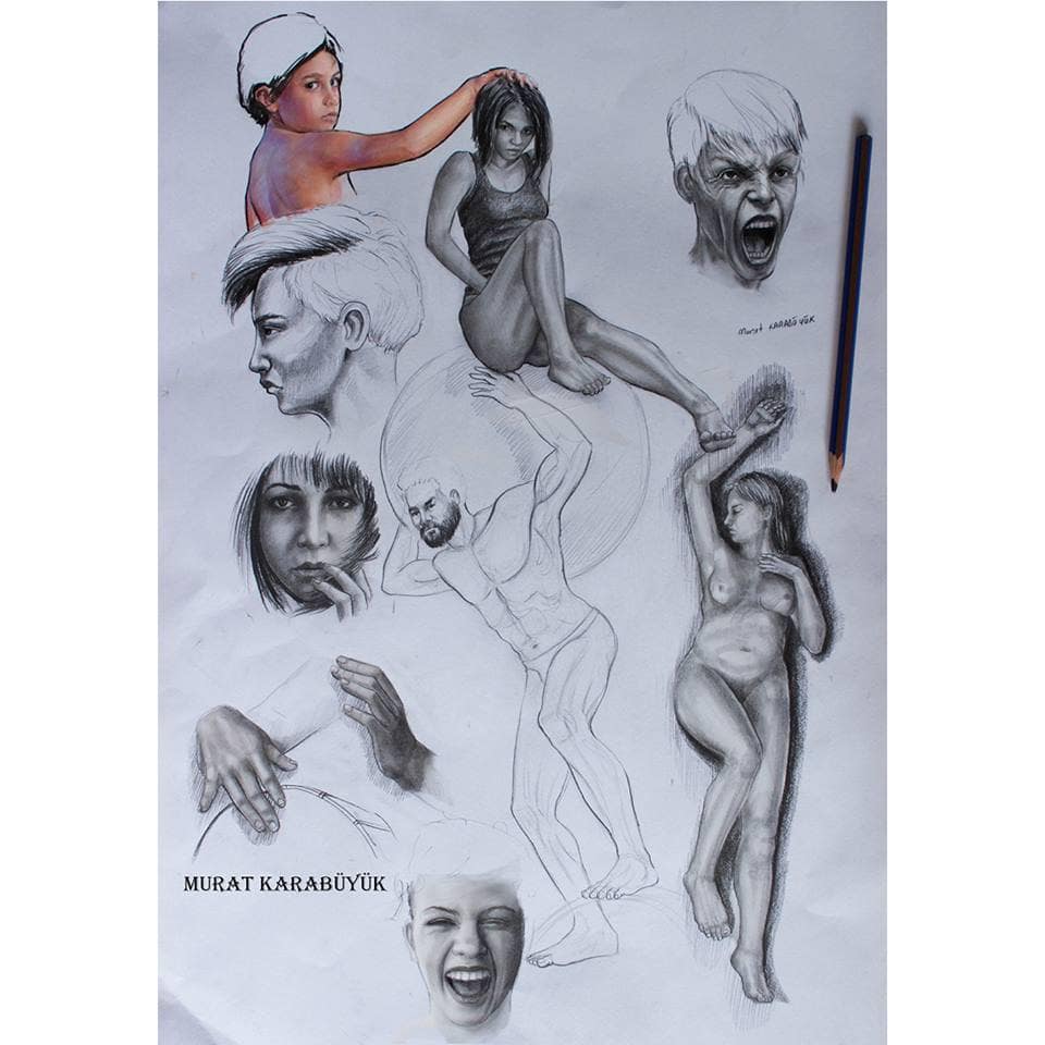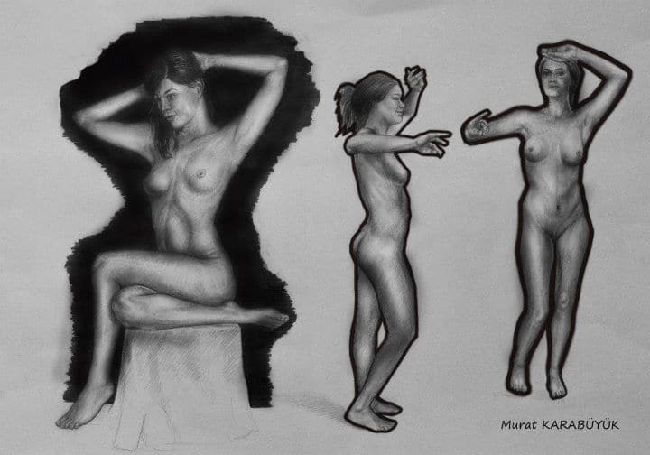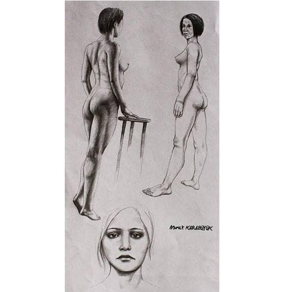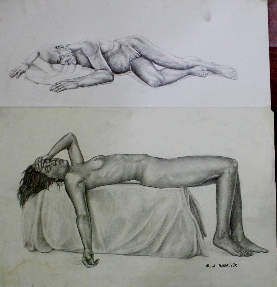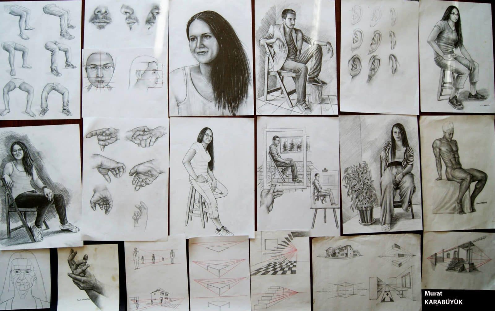 Ressam Murat Karabüyük’ün Karakelm veya Renkli Kalem ile resmettiği anatomi veya perspektif çalışmaları