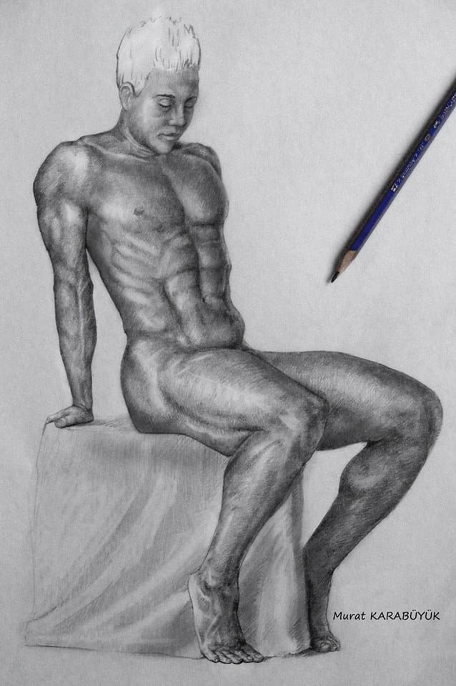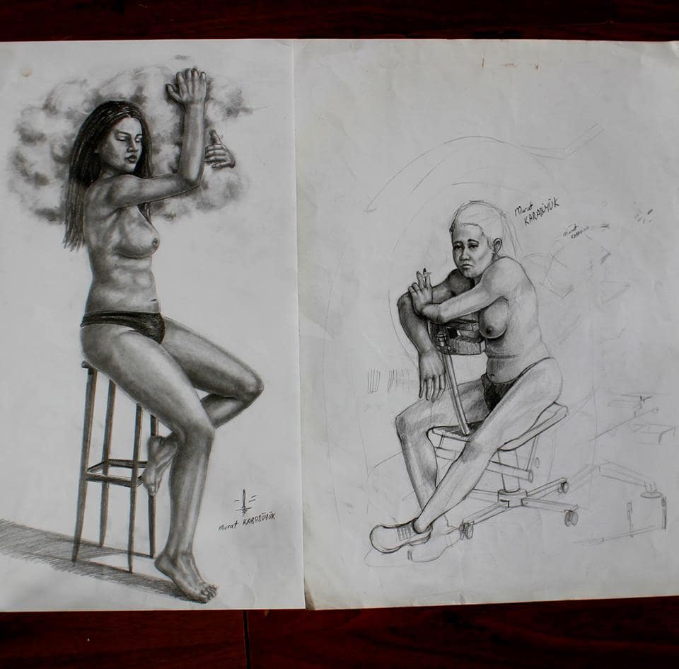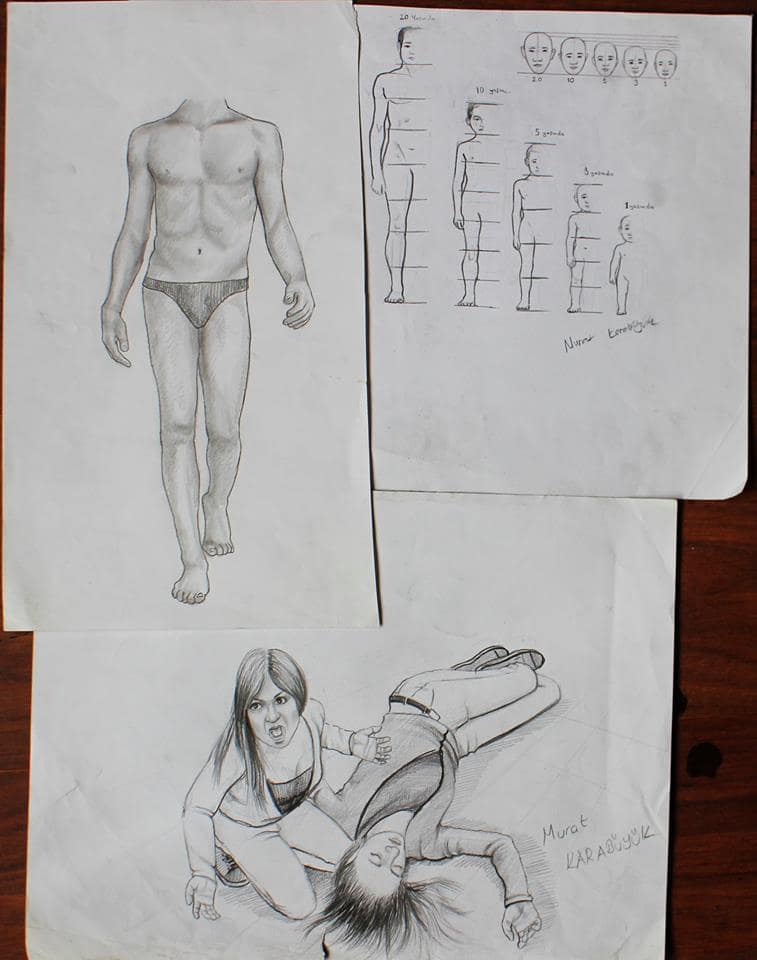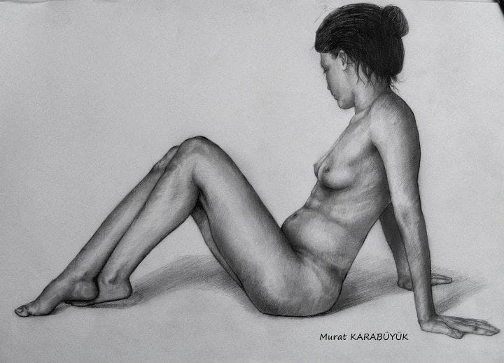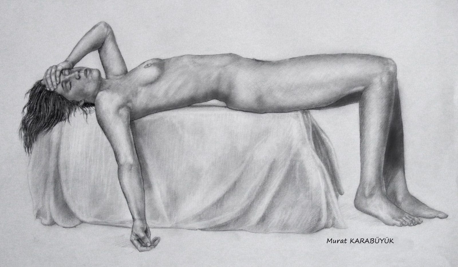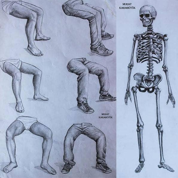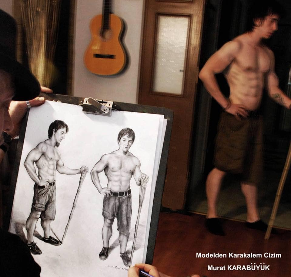Ressam Murat Karabüyük’ün Karakelm veya Renkli Kalem ile resmettiği anatomi veya perspektif çalışmaları