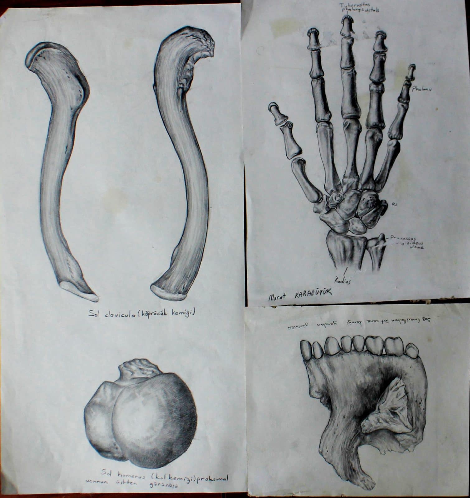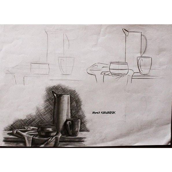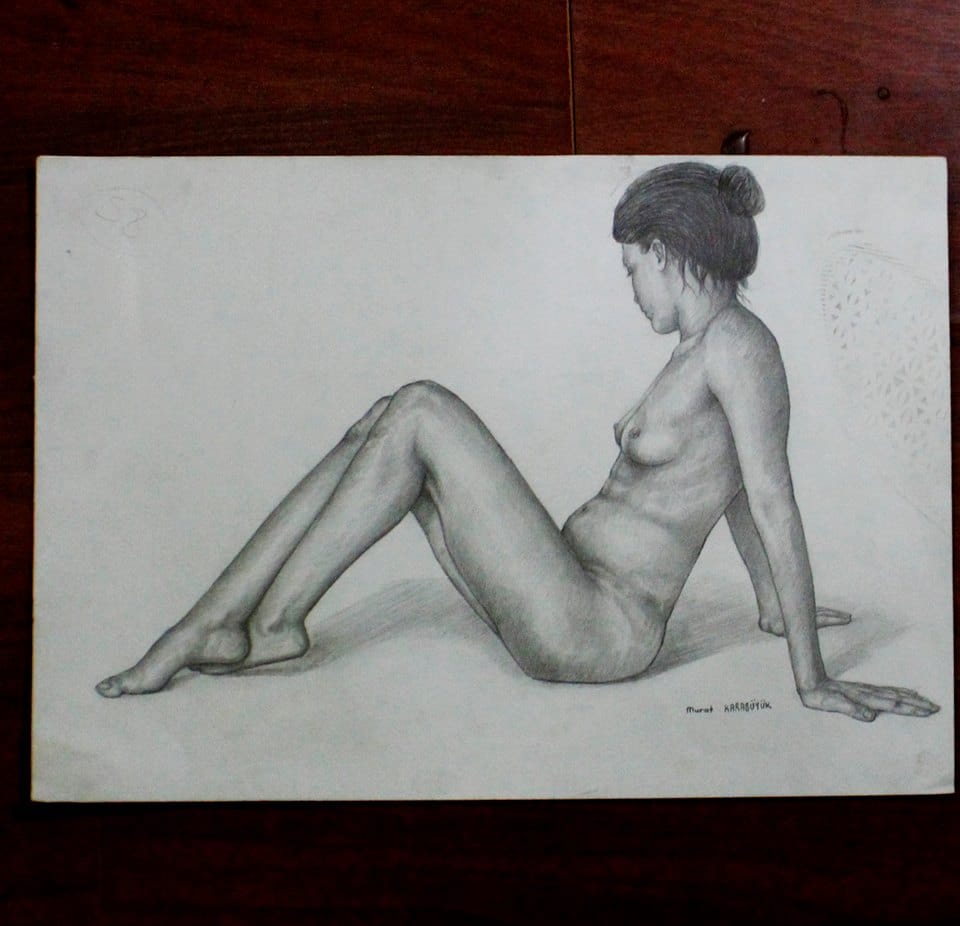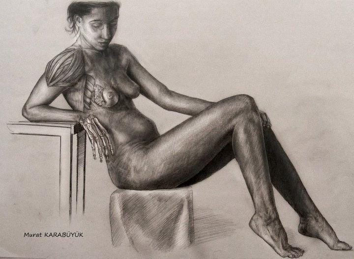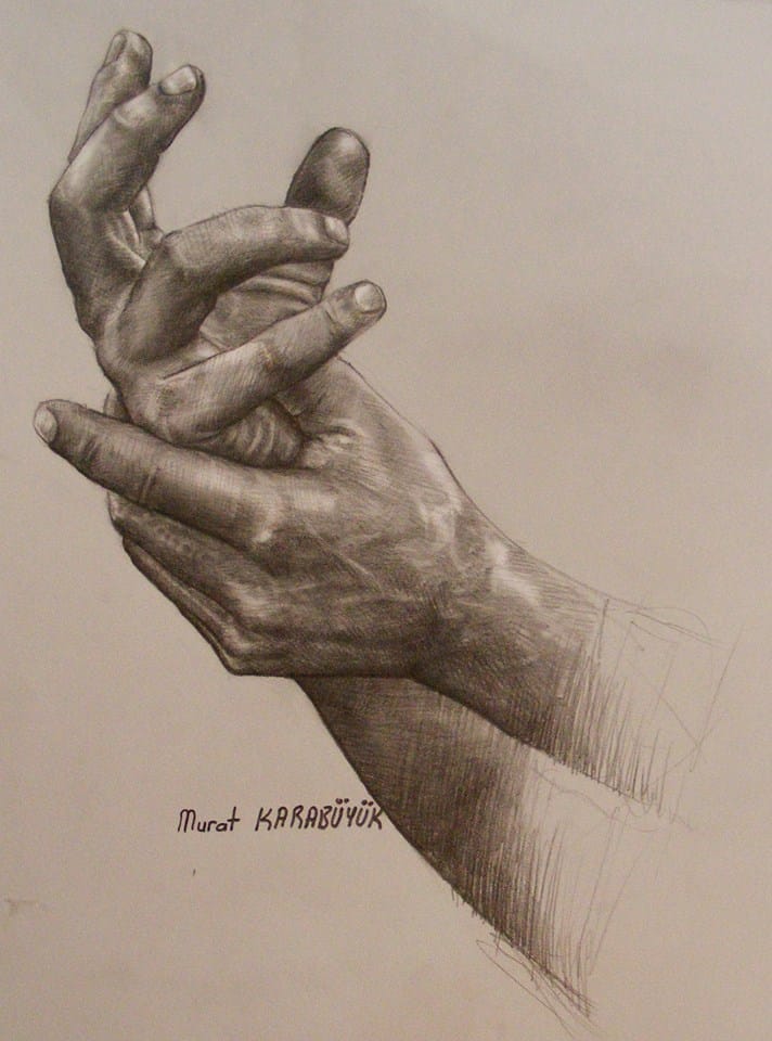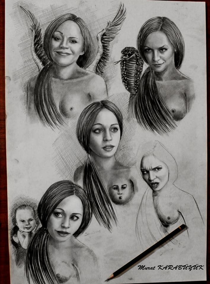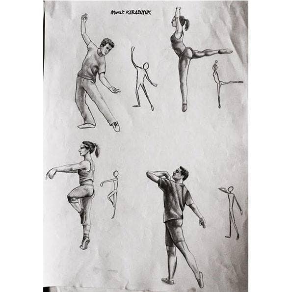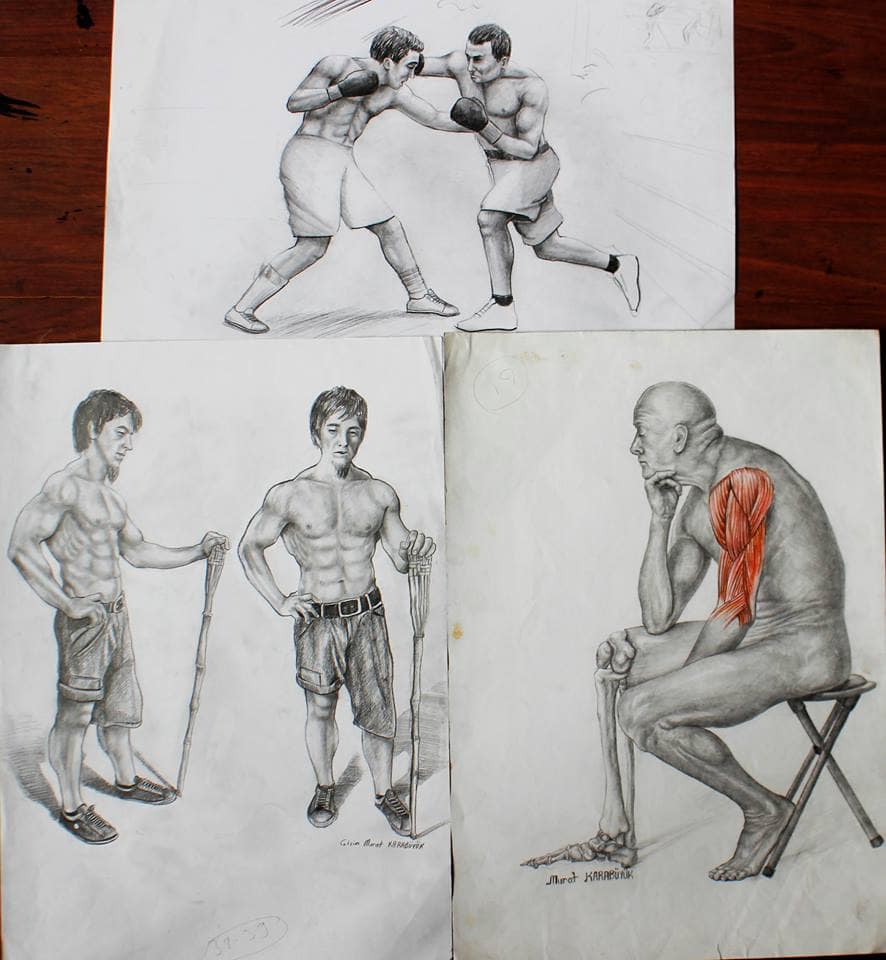 Ressam Murat Karabüyük’ün Karakelm veya Renkli Kalem ile resmettiği anatomi veya perspektif çalışmaları