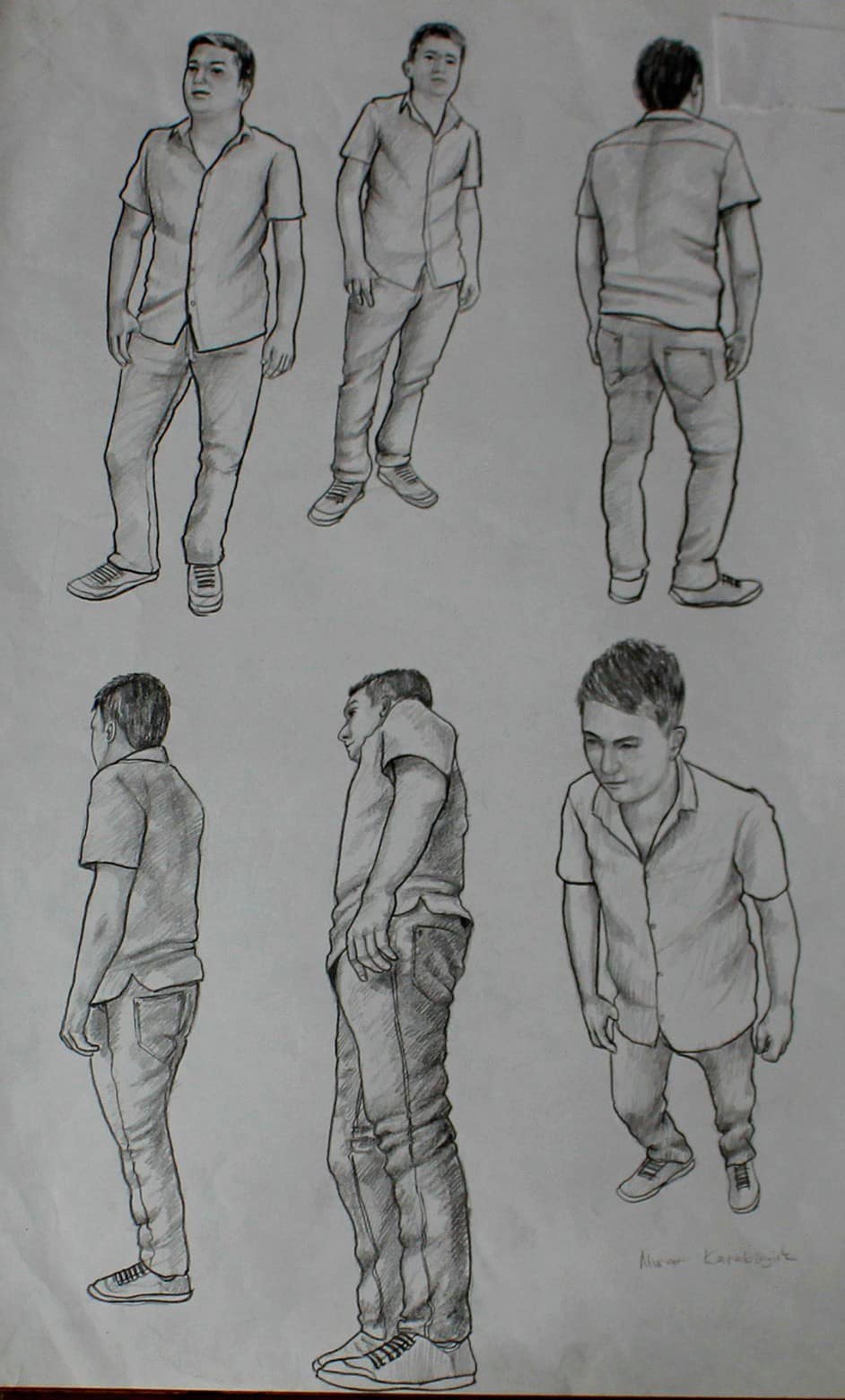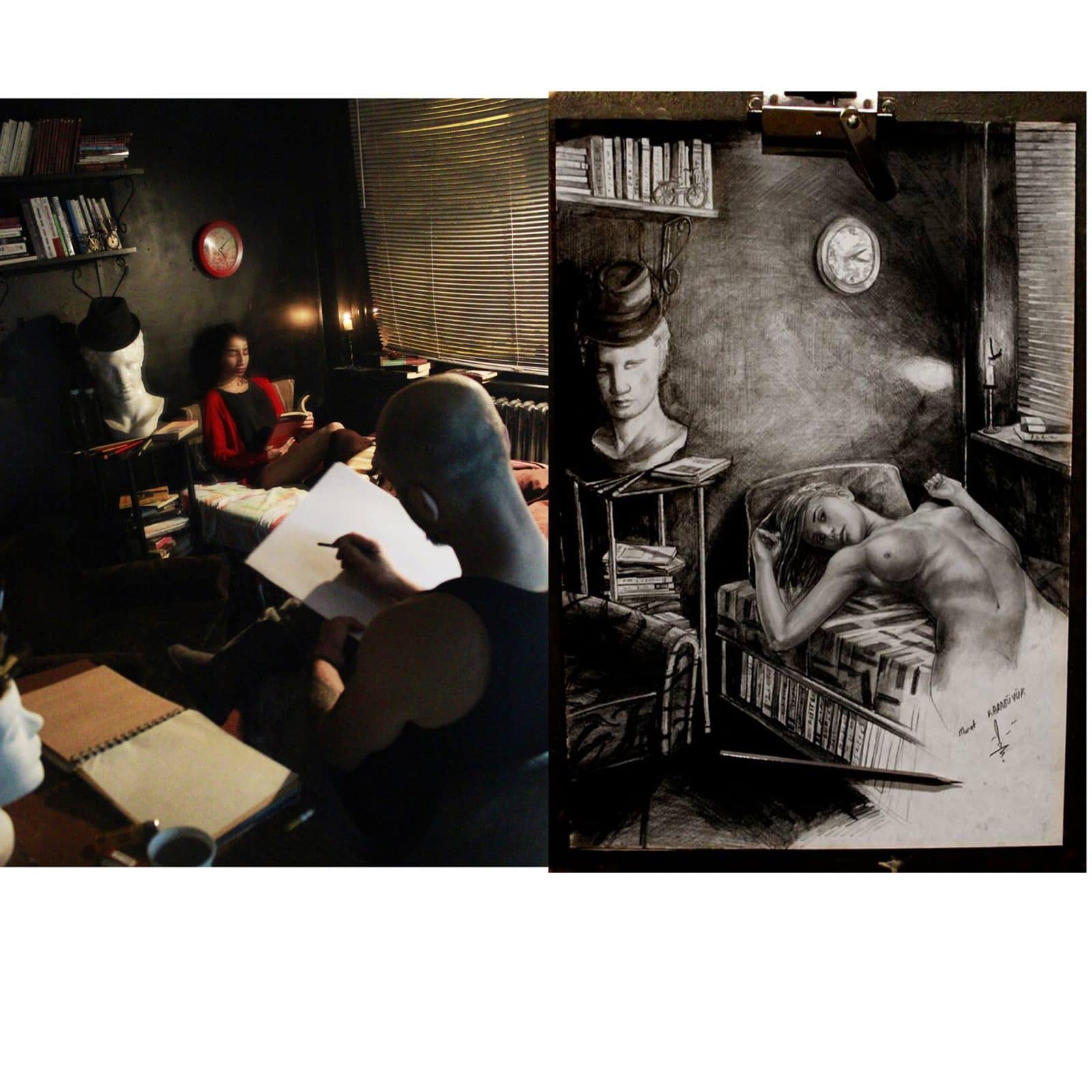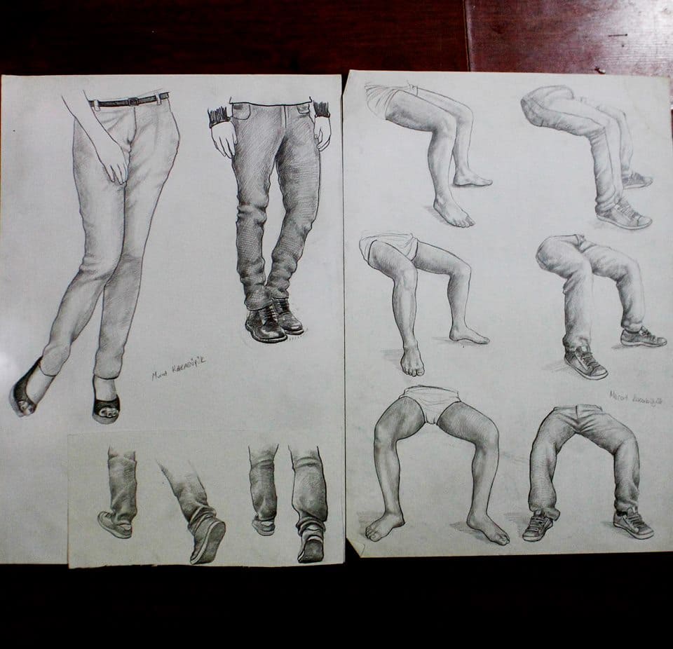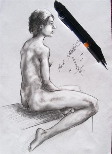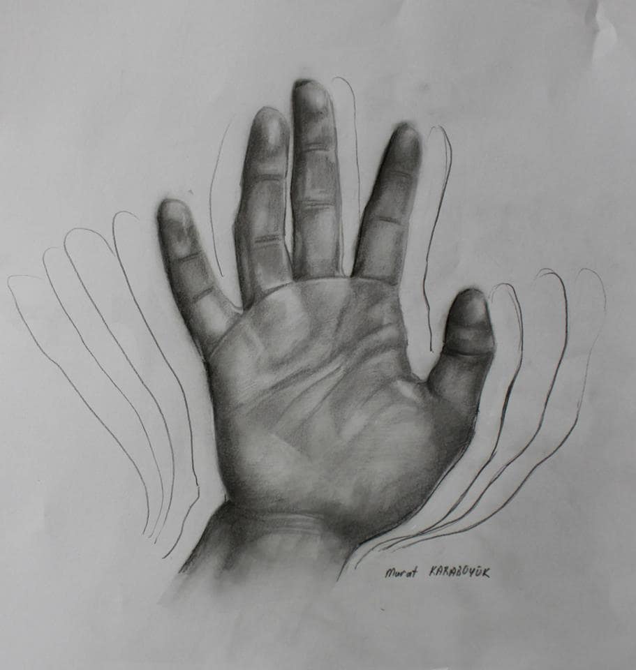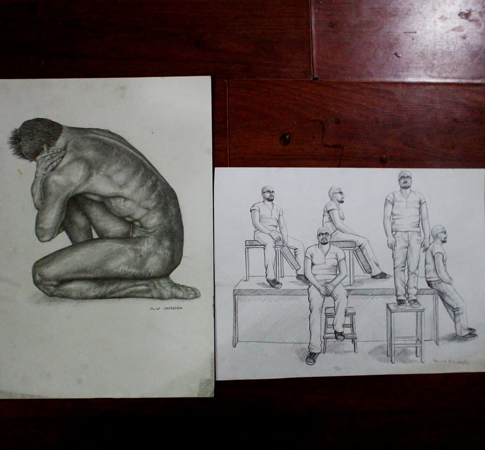 Ressam Murat Karabüyük’ün Karakelm veya Renkli Kalem ile resmettiği anatomi veya perspektif çalışmaları