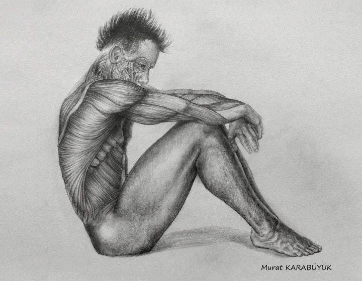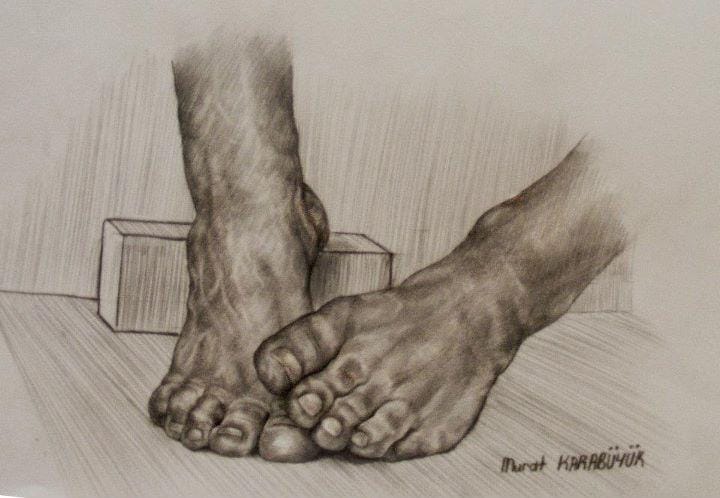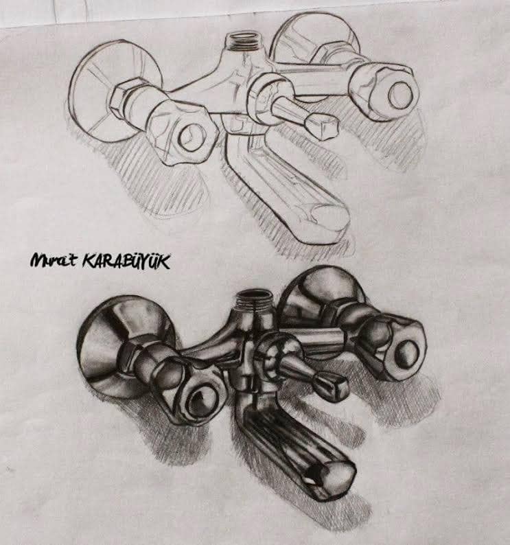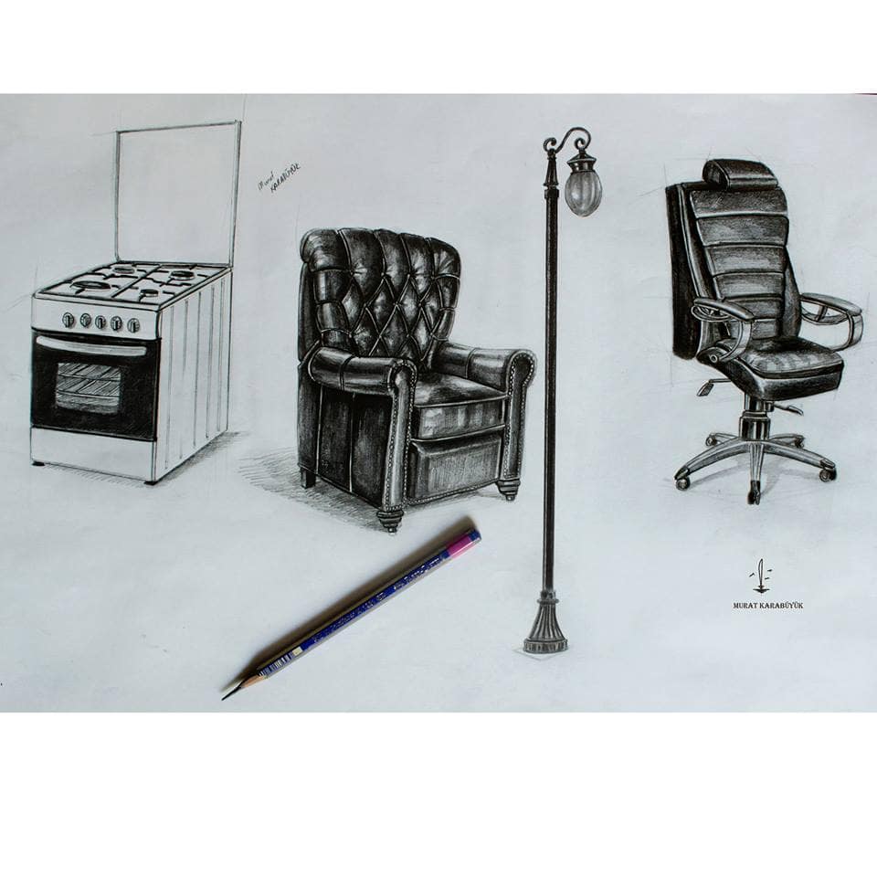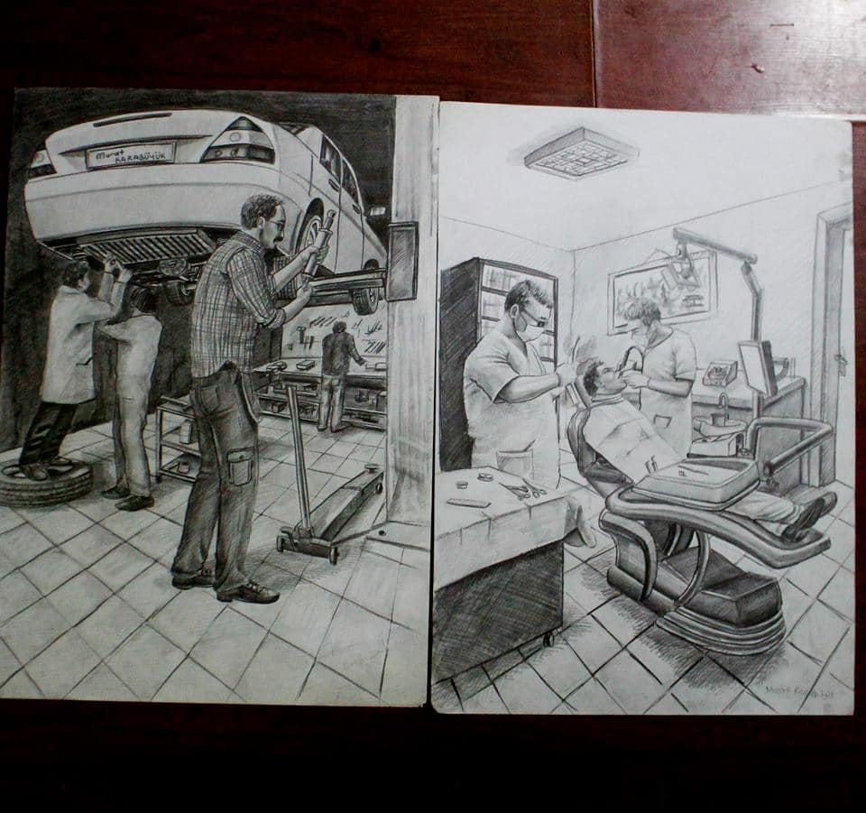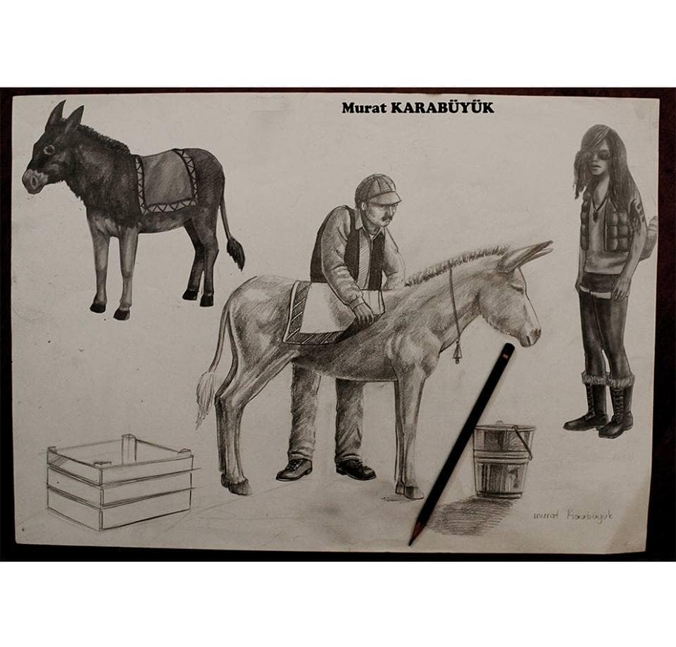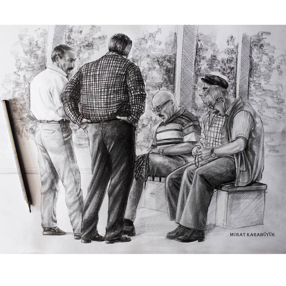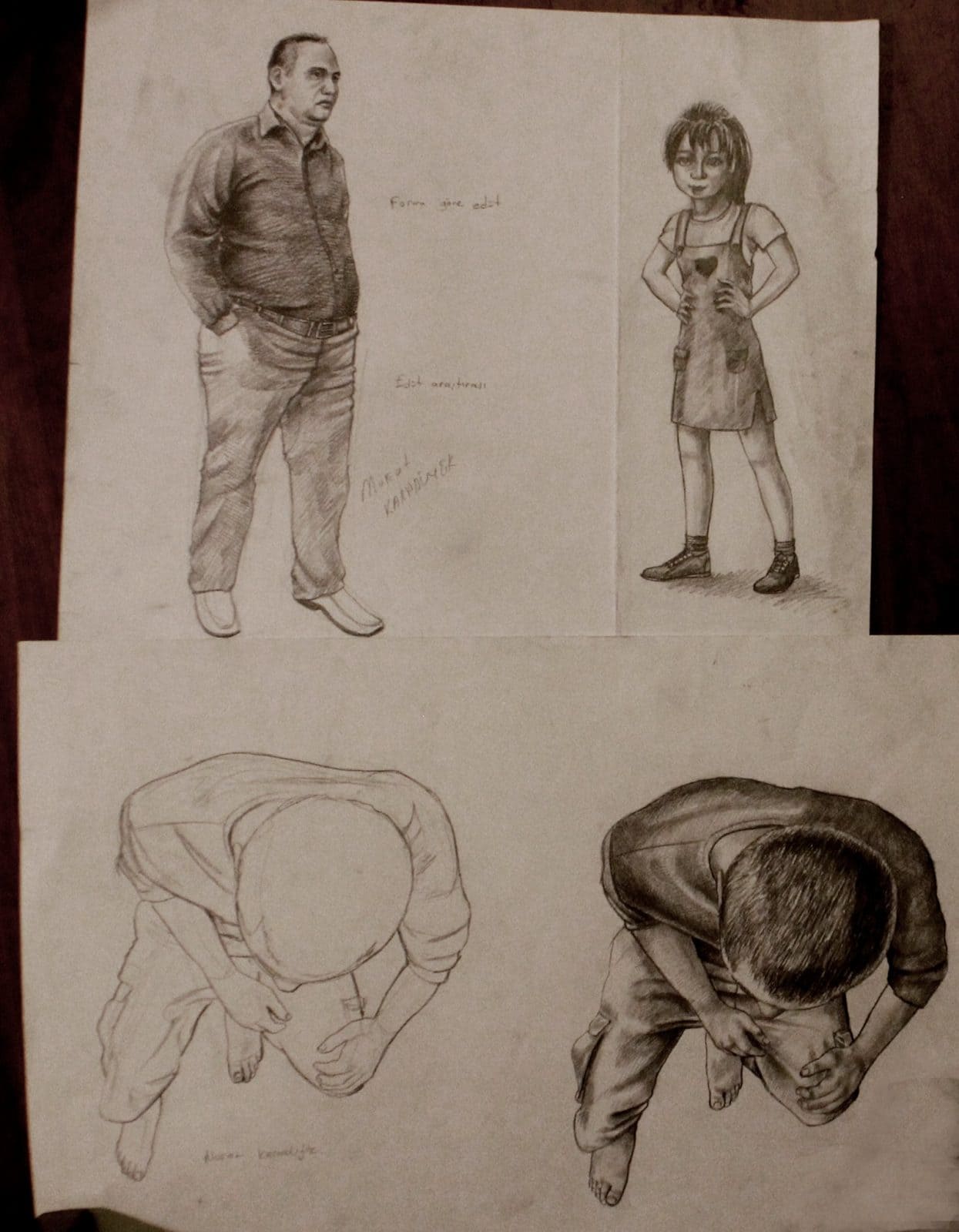 Ressam Murat Karabüyük’ün Karakelm veya Renkli Kalem ile resmettiği anatomi veya perspektif çalışmaları