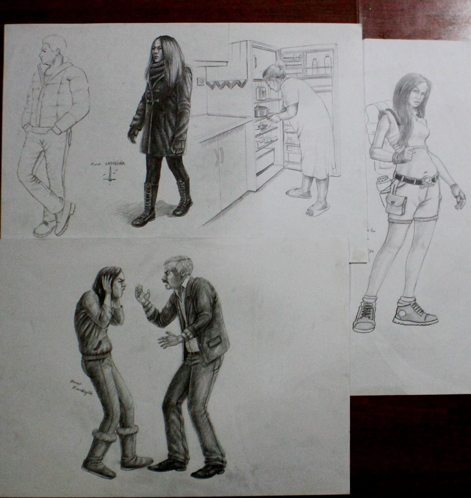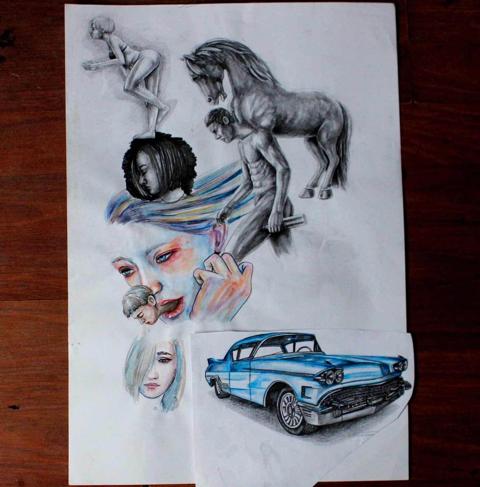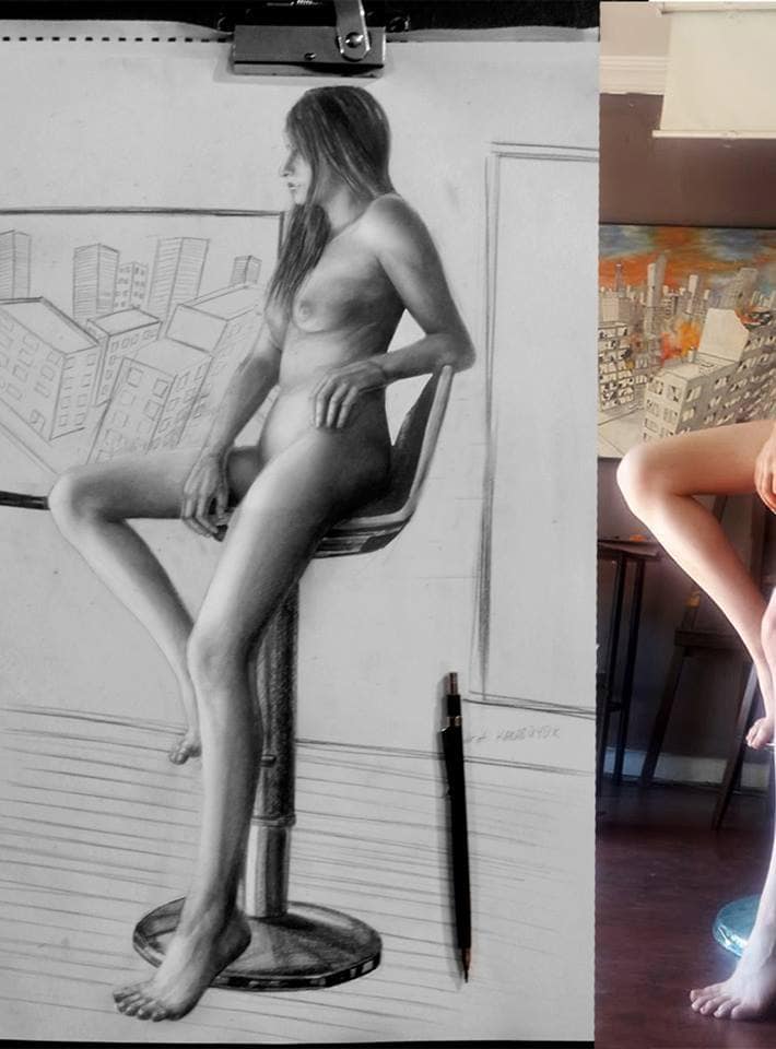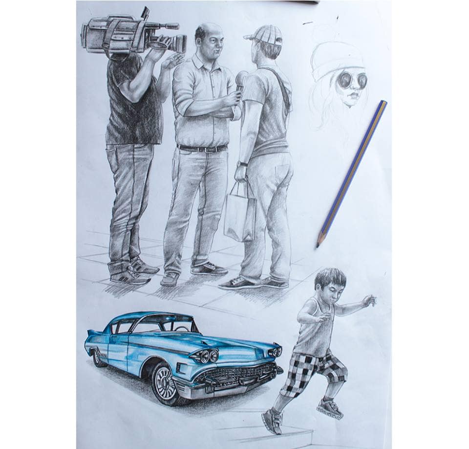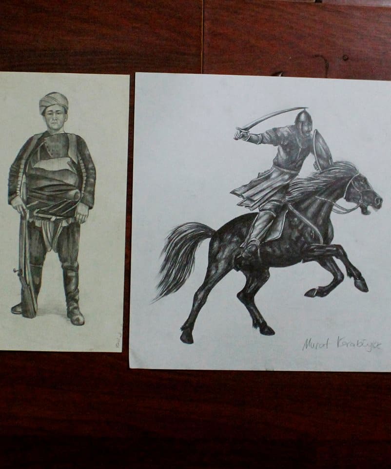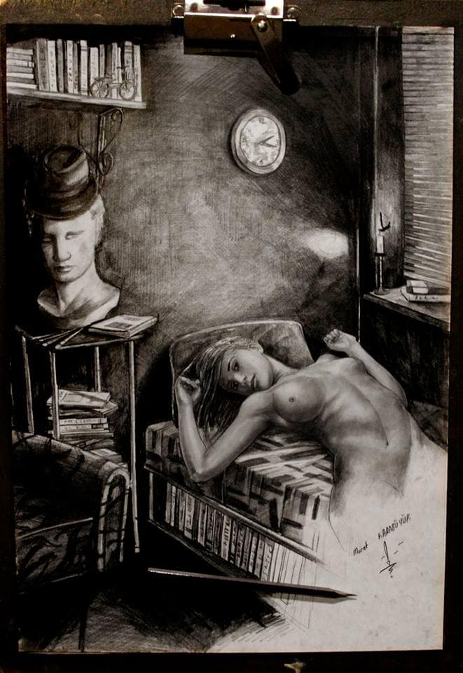 Ressam Murat Karabüyük’ün Karakelm veya Renkli Kalem ile resmettiği anatomi veya perspektif çalışmaları